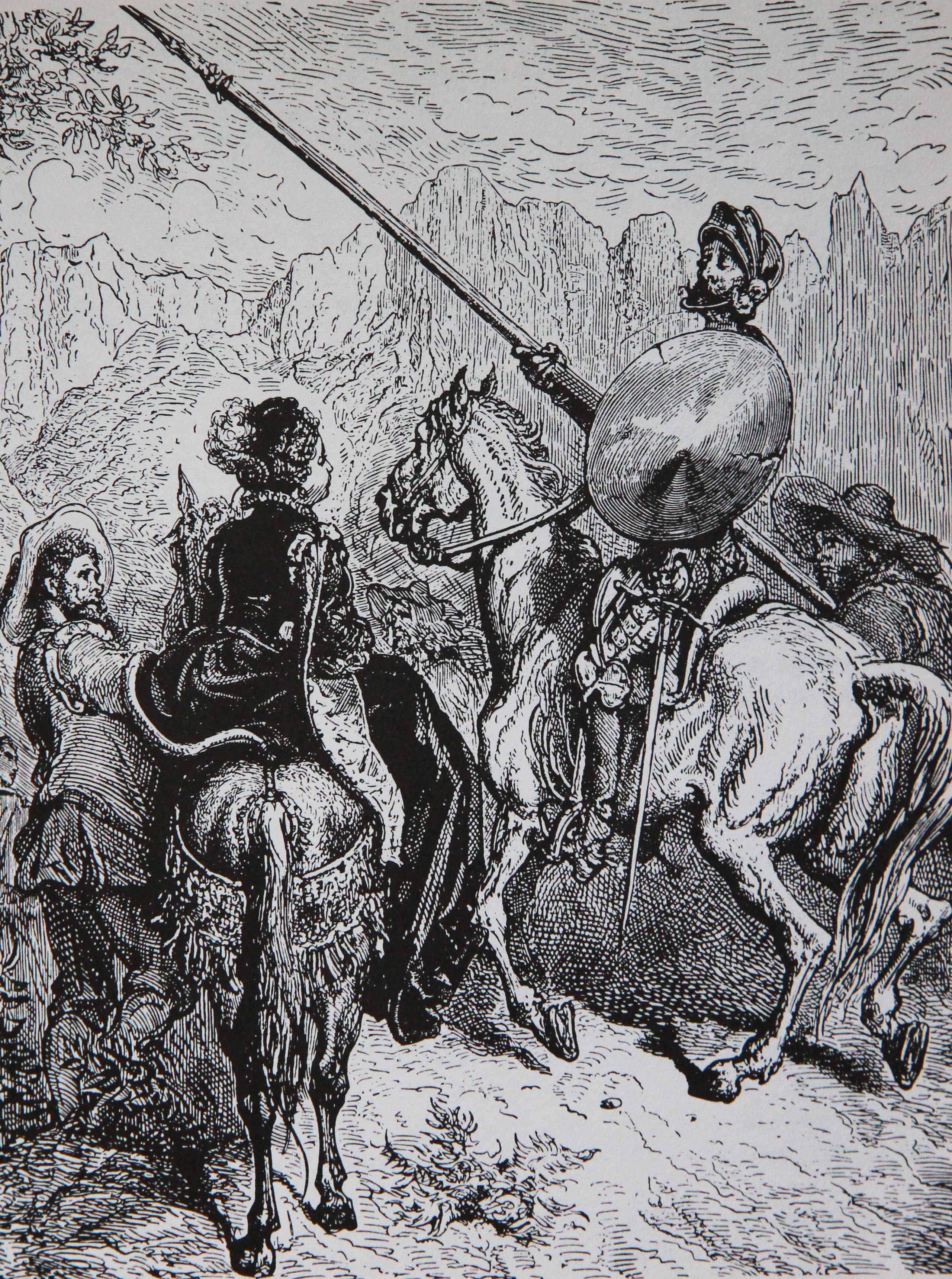 Сервантес, очевидно, задумывал свой роман как пародию на рыцарские романы, но в итоге произведение получилось и шире, и глубже – трагикомический эпос испанской жизни на стыке XVI – XVII веков. Идальго Дон Кехана решил стать странствующим рыцарем. Вся атрибутика рыцарства налицо: возлюбленная выбрана и ей дано звучное имя – Дульсинея Тобосская, найден оруженосец Санчо Панса, правда, на осле Сером, но где в рыцарских романах сказано, что так нельзя? Зато Дон Кихот Ламанчский на Росинанте. Вперёд за подвигами ради дамы своего сердца, за личной славой! Однако времена рыцарства уже прошли, хотя романами об этом ещё многие зачитываются. И ещё одно обстоятельство: наш новоявленный рыцарь не в себе, а Санчо Панса не может противостоять своему господину. Сумасшедший рыцарь, не потерявший благородства и чести, путешествующий по Испании и совершающий свои нелепые подвиги. Такого в литературе до Сервантеса ещё не было и это было интересно читателю. Понятия «донкихотство», «борьба с ветряными мельницами» стали вечными.